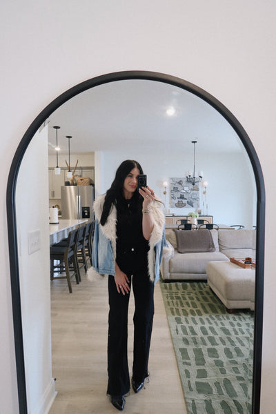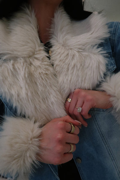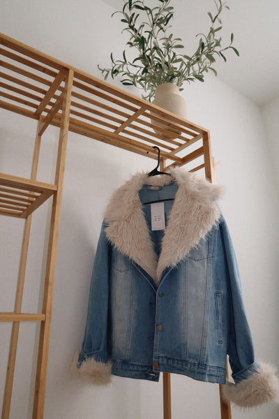 Fur Collard Cuff Over sized Washed Denim Jacket. Fur is removable.